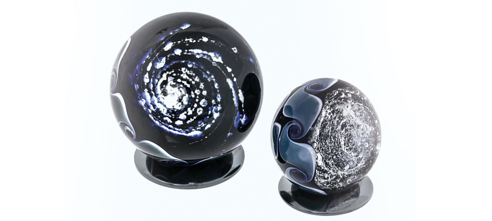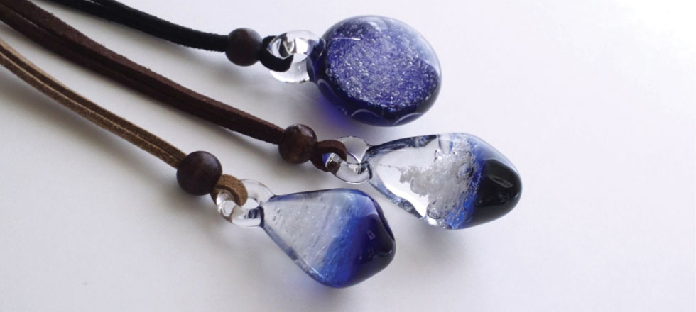 ご遺族のご要望によりペットのご遺骨を預かり、自身の手で丁寧な粉末化を研究し美しいガラスの玉に仕上げる加工に成功しました。